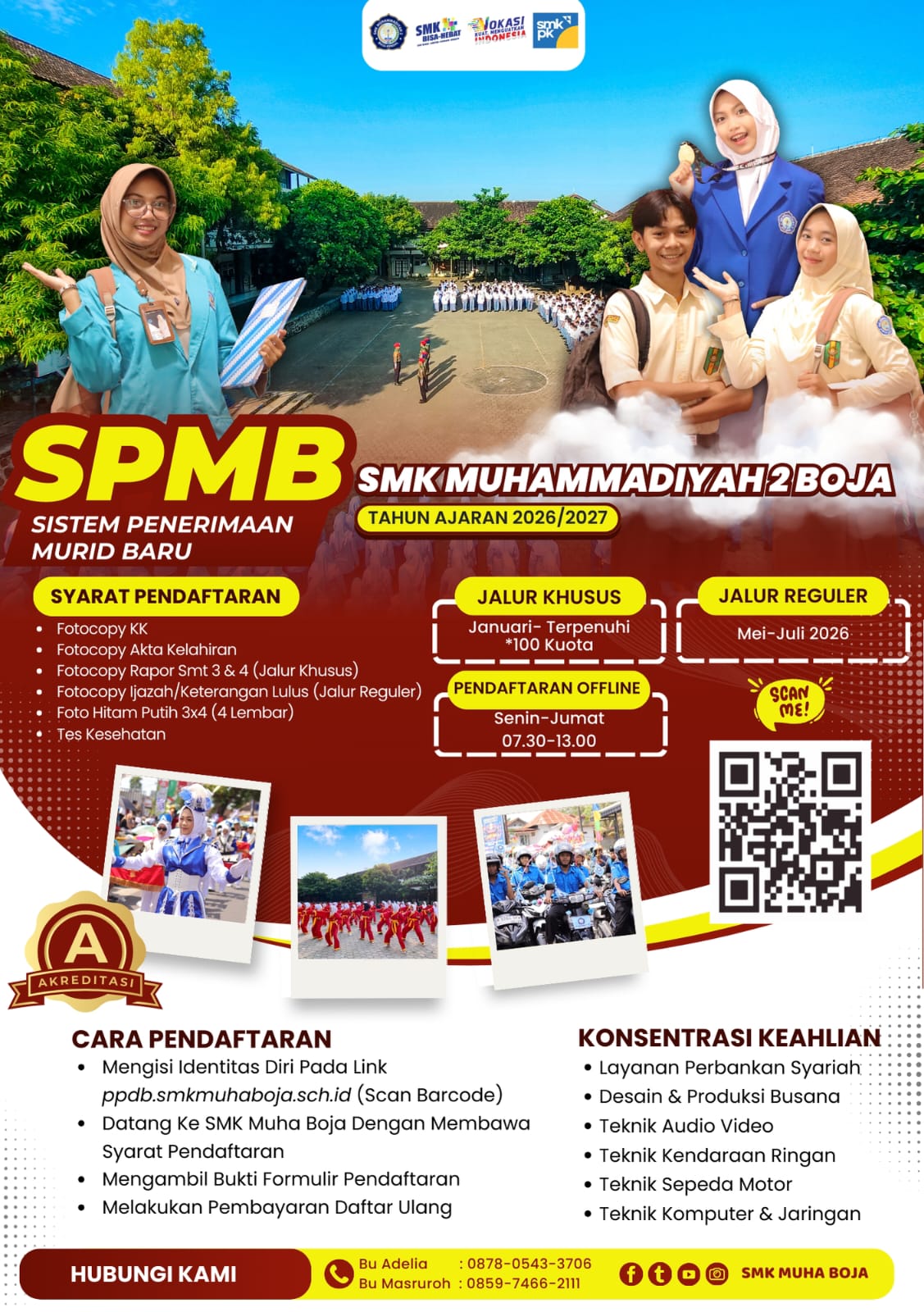 Dengan penuh rasa syukur, kami ucapkan selamat datang di website resmi SMK Muhammadiyah 2 Boja. Website ini kami hadirkan sebagai sarana informasi, komunikasi, serta media publikasi untuk seluruh warga sekolah, orang tua, alumni, maupun masyarakat luas.